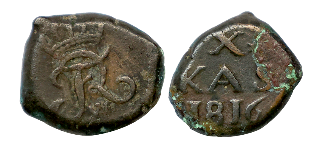 Indo Danish, Frederik III (1648-1670 AD), Lead Cash, 3.31 gms, Obv. Crowned F3 monogram, Rev. slesvig lion to right, KM # 84, fine, rare.