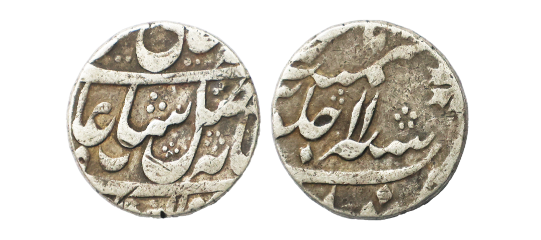 Bengal Presidency, INO Shah Alam II (AH 1174-1221, 1759-1806 AD), Silver Rupee, 11.30 gms, Muhammadabad Banaras Mint, AH 1229, RY 17/49, KM # 40.1, uncirculated, scarce.