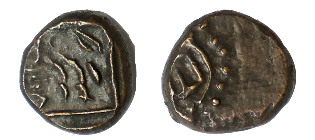 Madras Presidency, Salem Copper Cash, 1.24 gms, Obv. GVEI within heart shape shield, Rev. mint name above uncertain symbol, Prid #105, fine+, rare.
