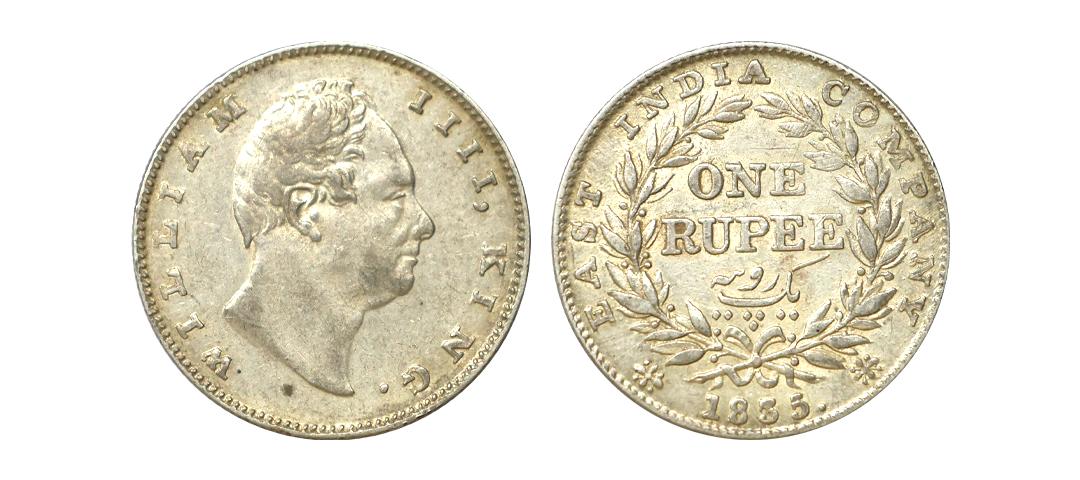 William IIII King, Silver Rupee, 1835, Bombay Mint, Obv: B / Rev: II With Bud Leaf, Extra Fine.