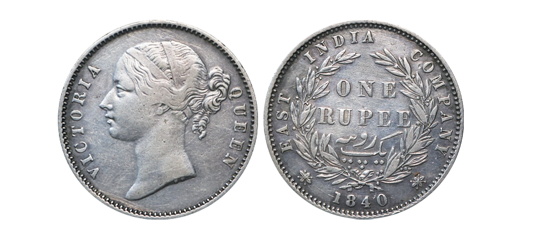 Victoria Queen, Silver Rupee, 1840, W.W.B Raised, Madras Mint, 28 Berries, Extra Fine+. Beautiful Toning.
