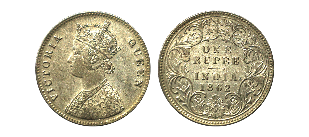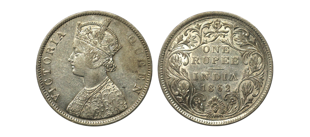 Victoria Queen, Silver Rupee, 1862, C/II, 1/6(2+4) DOTS, Struck over the earlier used dies of 0/6 dots, Very Rare.