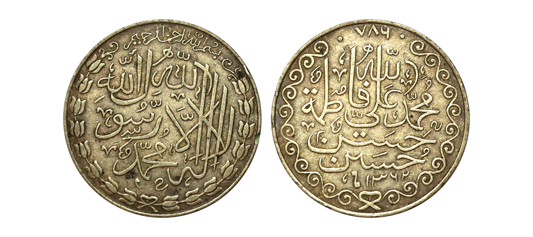 Silver Islamic Token, 11.67 gms, Obv. Kalima, Rev. Husain, Hasan, Muhammad, Ali & Fatima AH 1362(1943), very fine, scarce.