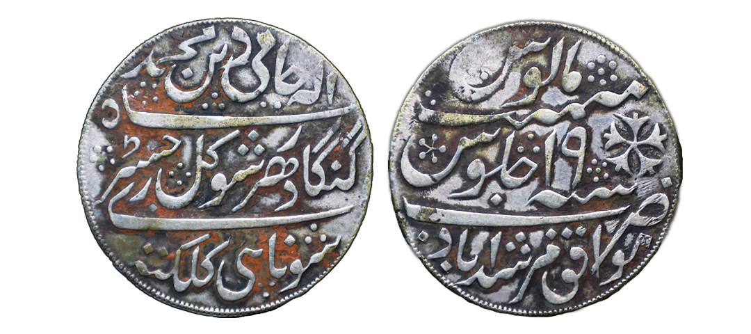Token, Silver, 11.20g, Zarb Sonapatti Kalcutta Mint, RY 19, Copy Token of Shah Alam II Murshidabad Mint Rupees, About Extremely Fine, Scarce.