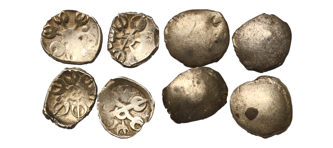 Gandhara Janapada (600-300 BC), Punch Marked Coin, Set of 4, Silver Shana, 1/8 Shatamana, 1.38 gms, 1.42 gms, 1.44 gms, very fine+, very scarce.
