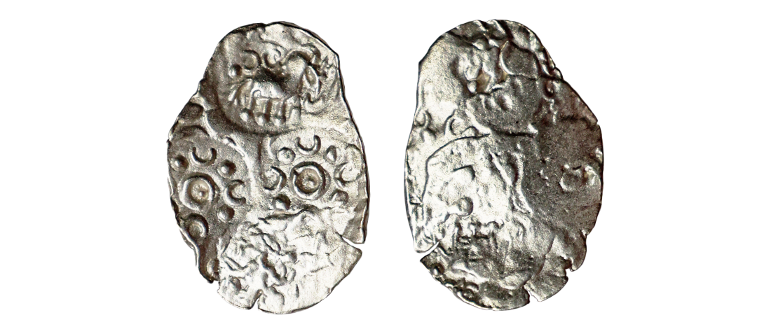 Vidarbha Janapada, Godavari Valley, Silver ½ Karshpana, 1.34 gms, Series II, Makhala Type, ABCB Type, four punches showing Elephant to left, tortoise, 2x geometric symbol showing pellets, Kulkarni #Type M210, very fine, very scarce.