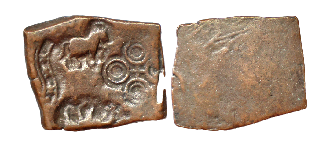 Ancient, Post Mauryan, Eran Region, (2nd-1st Century AD), Copper Unit, 1.65 gms, Railed tree with river below, Uniface, very fine, scarce.