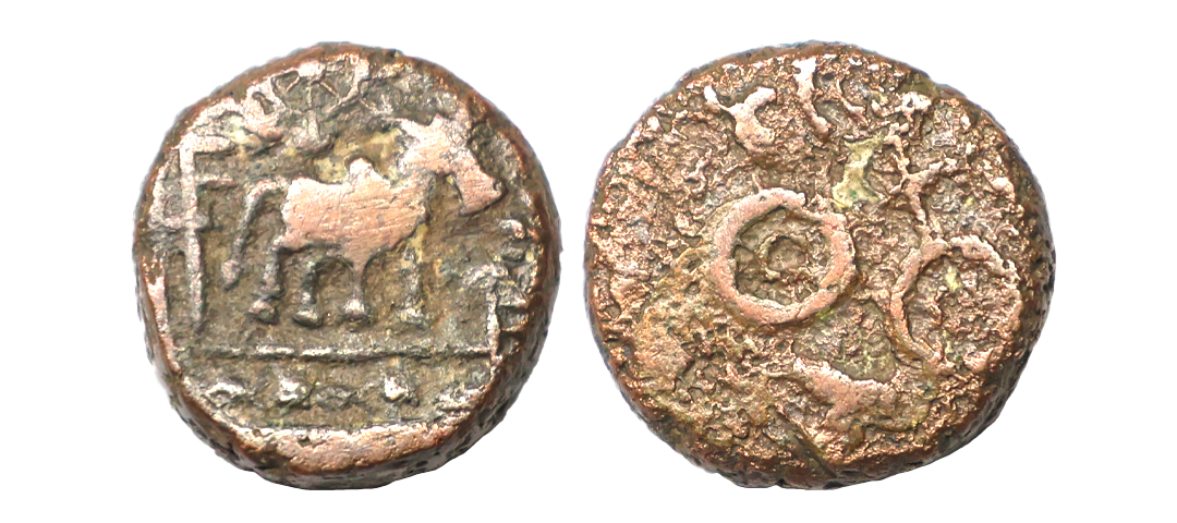 Ancient, Post Mauryan Ujjain, (2nd-1st Century BC), Copper Unit, 4.53 gms, Obv. Standing mahakal figure, Rev. blank, Pieper #692, fine, very scarce.