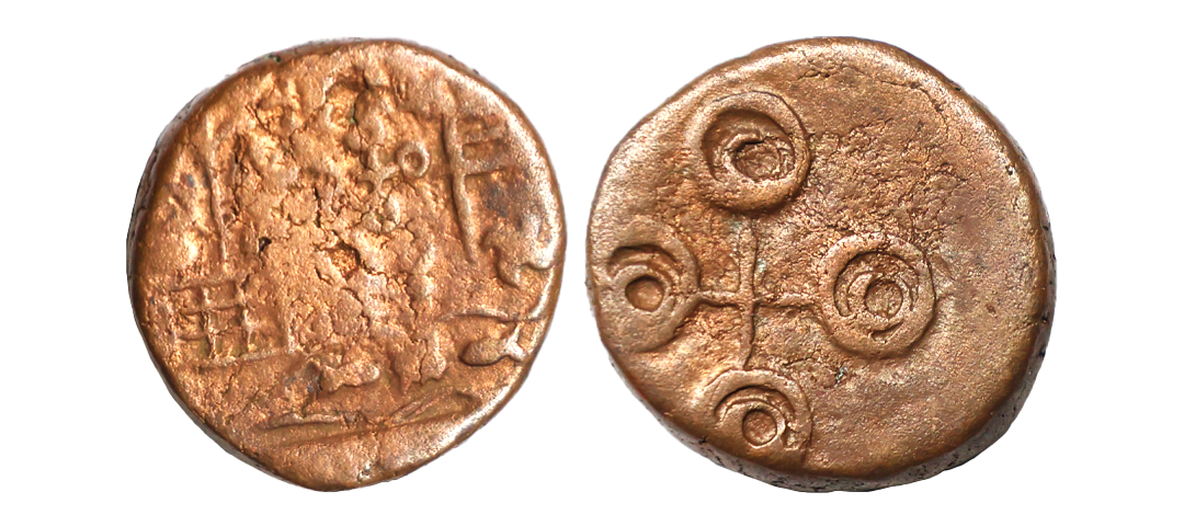 Ancient, Post Mauryan Ujjain, (2nd-1st Century BC), Copper Unit, 4.53 gms, Obv. Standing mahakal figure, Rev. blank, Pieper #692, fine, very scarce.