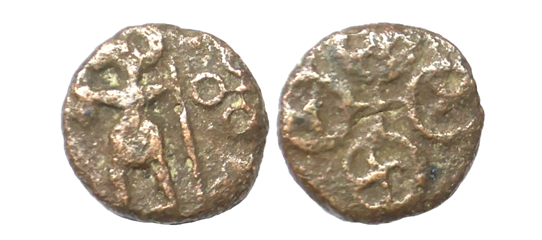 Ancient, Post Mauryan Ujjain, (2nd-1st Century BC), Copper Unit, 5.08 gms, Multiple symbol type, similar to Pieper #763, about very fine, very scarce.