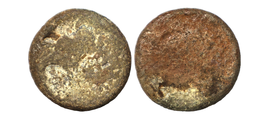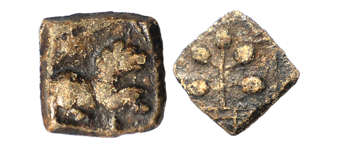 Ancient, Satavanahas, Siri Satakarni (100-150 BC), Potin Unit, 3.07 gms, Obv. Elephant to right brahmi legends ‘(si)risatakani(sa) above, Rev. Ujjaini symbol, very fine, scarce.