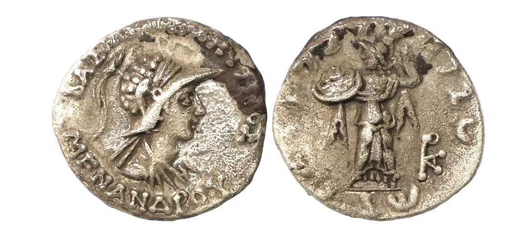 Bactrian Kingdom, Eucratides (170-145 BC), Silver Tetradrachm, 16.49 gms, Obv. Draped, cuirassed bust of Eucratides I right, seen from front, wearing crested Bactrian helmet adorned with bull's horn and ear; bead-and-reel border, Rev. ΒΑΣΙΛΕΩΣ ΜΕΓΑΛΟY / ΕΥΚΡΑΤΙΔΟΥ, the Dioscuri on horses prancing right, both with couched spear in right hand, palm over shoulder in left, Bop #6Z, HGC 12, very fine+, very rare.