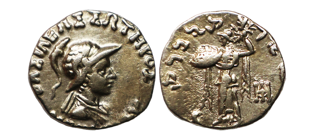 Indo-Greek, Apollodotus I (174-165 BC), Copper Hemi-obol, 6.80 gms, Apollo standing facing, holding arrow in right hand and bow in left, Greek legend around partially reading ‘BAΣIΛEΩΣ AΠOΛΛOΔOTOY ΣΩTHPOΣ’, Rev: Tripod within dotted border, monogram at right,Kharoshthi legend on three sides reading ‘maharajasaapaladatasatratarasa’, about fine, scarce.
