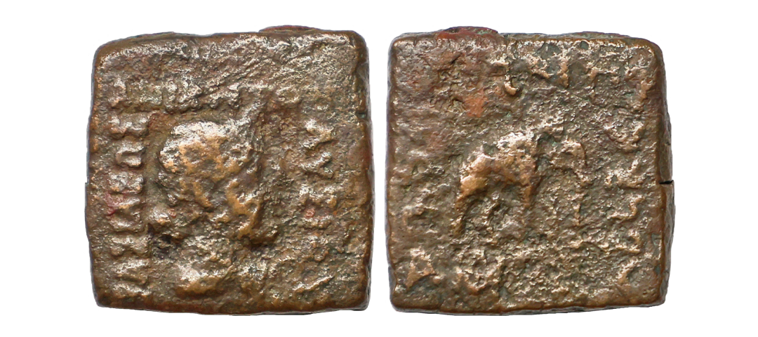 Ancient, Indo-Greek, Menander I (c. 160-145 BC), Copper Unit, 1.94 gms, Club of Herakles with Kharoshthi legend MaharajasaTratarasaMenamdrasa around, Uniface?, Bopearachchi& Rahman #394, about very fine, very scarce.