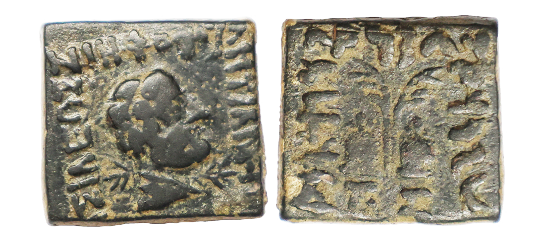 Ancient, Indo-Greek, Menander I (c. 160-145 BC), Copper Unit, 1.94 gms, Club of Herakles with Kharoshthi legend MaharajasaTratarasaMenamdrasa around, Uniface?, Bopearachchi& Rahman #394, about very fine, very scarce.