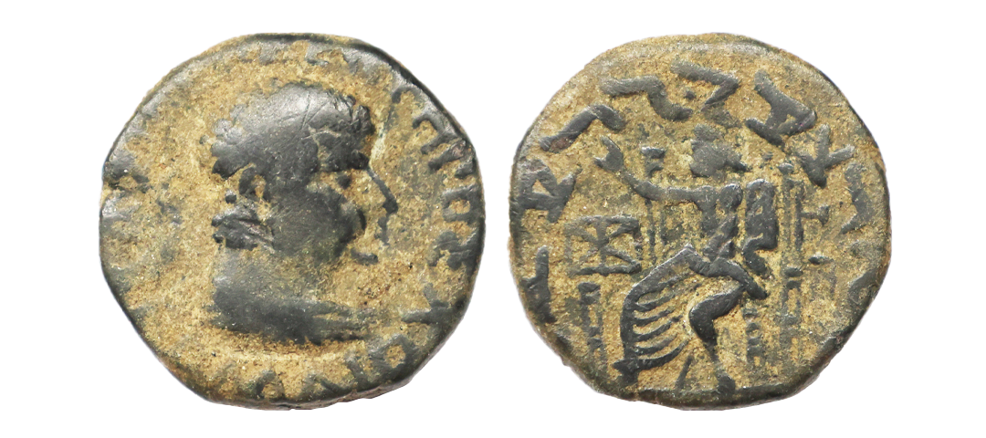 Indo-Greek, Apollodotus II (80-65 BC), Copper Unit, 1.75 gms, Obv. Bull to right, Rev. Tripod within beaded borders, Bop #19A, very fine, scarce.