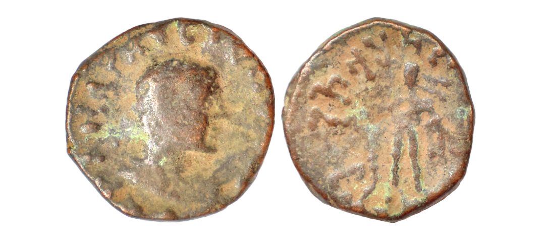 Indo-Parthians, Gondophares (c. 30-35 AD), Copper Tetradrachm, 8.19 gms, Obv. King’s bust to right with Greek legends around, Rev: Winged nike advancing right with wreath and palm and Kharosthi legends around, Bopearachchi & Rahman # 980, about very fine, very scarce.