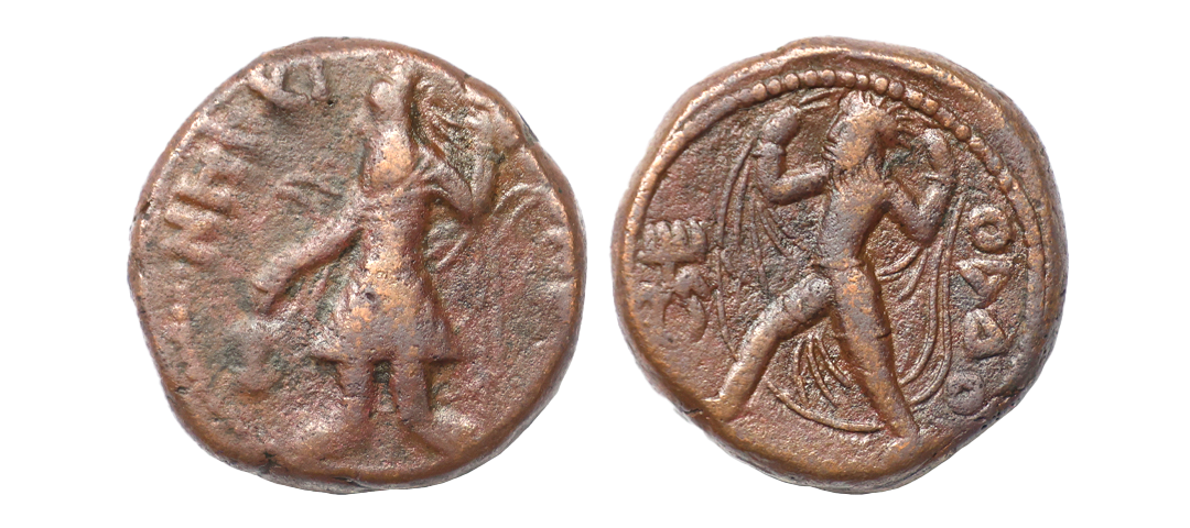Ancient, Kushans, Vima Kadphises (110-127 AD), Copper Tetradrachm, 16.27 gms, Bilingual Type, about very fine, very scarce.