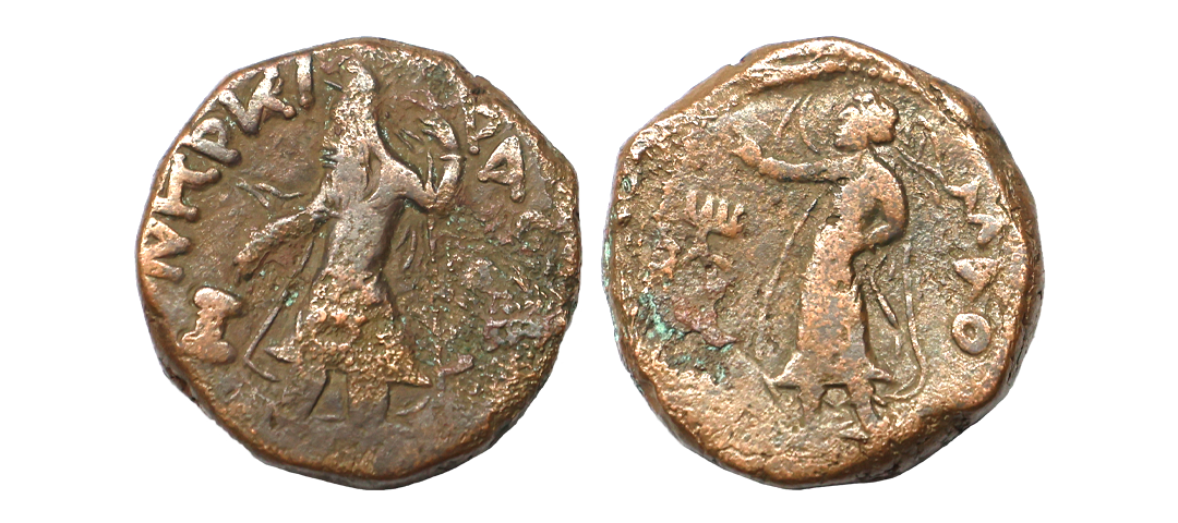 Ancient, Kushans, Kanishka I (128-150 AD), Copper Tetradrachm, 16.25 gms, Wind God ‘Oado’ type, fine, scarce.