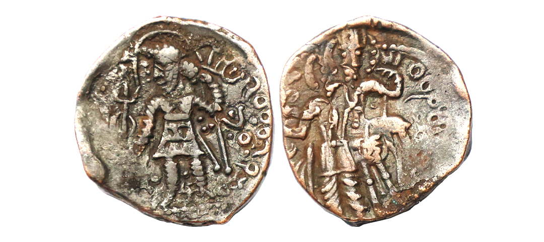 Ancient, Kushano-Sasanians, Hormizd I (265-295 AD), Copper Pashiz, 1.85 gms, Obv. Diademed, draped, Bearded bust of king to right wearing crwon with lotus blossom, Pahalvi script ' AWHRMYZDY MLKA '('Hormiz King') in right field, dotted border around, Rev. Sassanian fire altar with Ahura-Mazda emerging from flames holding holding diadem in his right hand and long scepter in his left, pahalvi legends ‘BWLZAWNDY YZDTY' ('Exalted God'), & dotted border around, ANS Kushan #2225, very fine+, rare in this grade.