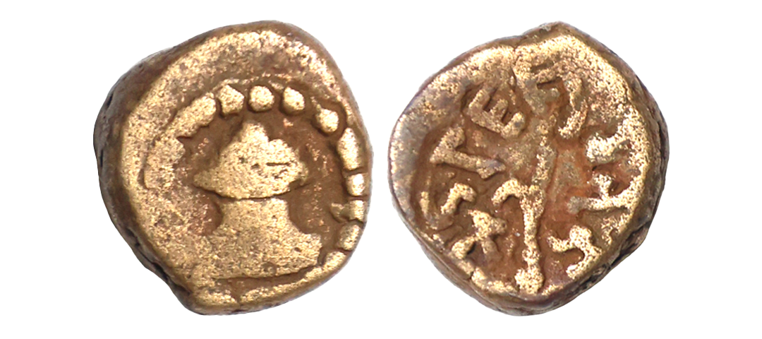Ancient, Kushano Sasanian, Peroz I (245-270 AD), Copper Drachm, 3.12 gms, Possibly Balkh Mint, Double Struck, Obv. King standing left, sacrificing at altar and holding trident; to left, trident standard above altar without ribbons; pellet to rightt of altar, pellet and swastika between legs, pellet below arm, nandipada to right, Greek legends around, Rev. Siva standing facing, holding diadem and trident behind the Nandi standing left, MK #1106, very fine, very scarce.