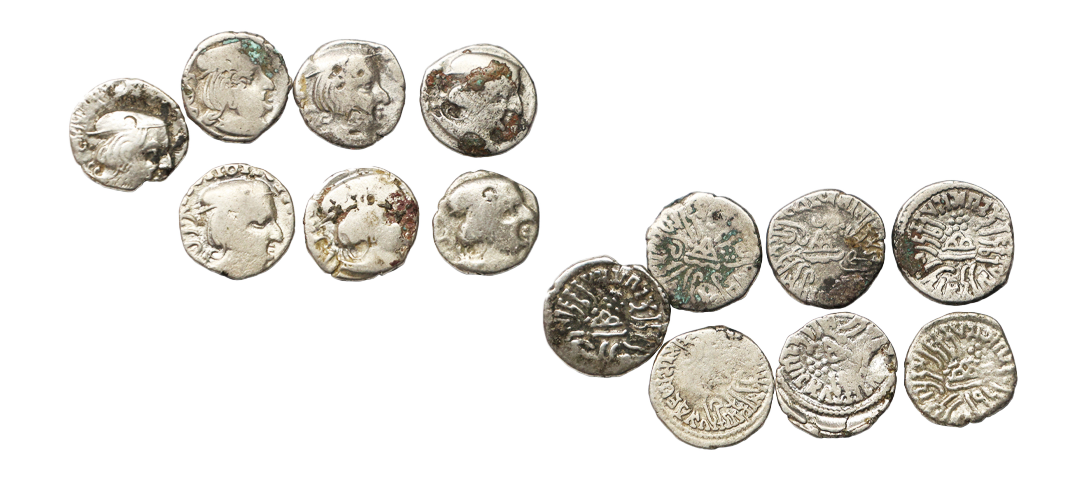 Western Kshatrapas (2nd Century AD), Set of 7 coins, Silver Drachm, 1.77gms, 1.57gms 1.67gms, 1.94gms, 1.98 gms, 1.51 gms, 1.86 gms, fine to very fine, scarce.