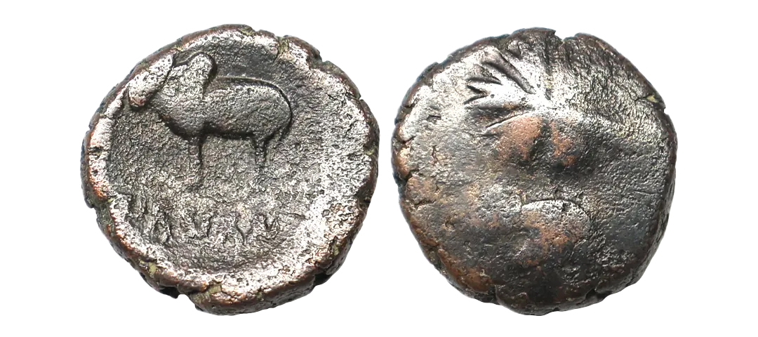 Ancient, Ayodhya, Satyamitra (3rd Century AD), Copper Heavy Unit, 6.77 gms, Obv. A humped bull standing facing left, Brahmi Legend ‘(Sa)TyaMiTaSa’ below, Rev. Traces of rooster facing a palm tree, Pieper #1062, fine, very scarce.