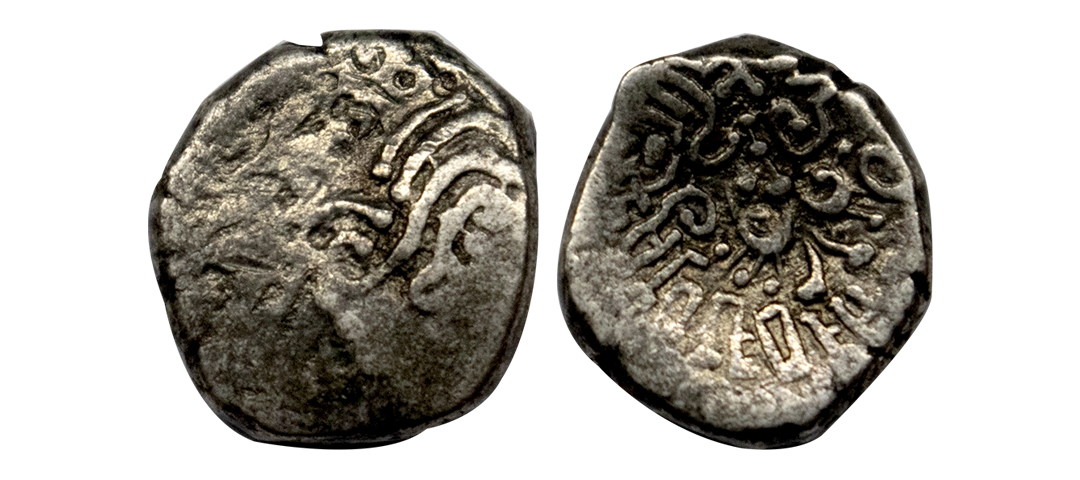 Ancient, Guptas, Kumara Gupta I (415-455 AD), Silver Drachma, 1.90 gms, Garud Type, Obv. Bust of king to right, Rev. Stylised Garuda at centre, Brahmi legend around reading clockwise as ‘ParamabhagavataMaharajadhiraja Shri KumaraguptaMahendraditya’, Pieper # 3563, extremely fine, scarce.