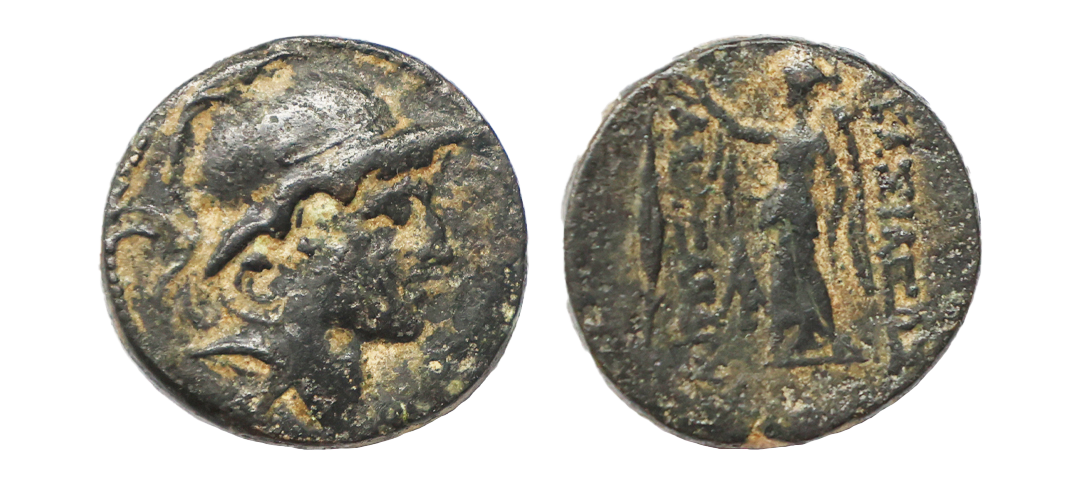 Kingdom of Macedon, Alexander III(posthumous issue), (336-326 BC), Copper Unit, Uncertain Mint in Asia, Obv. Macedon shield with head of Herakles in centre, Rev. Macedon helmet, Graded by NGC as Choice Fine, very scarce.