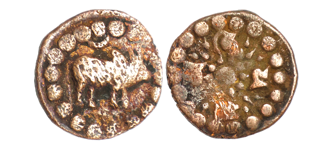 Nepal, Lichchhavi Dynasty, Narendradeva (641-680 AD), Copper, 3.29 gms, Pashupati type, Bull Sun, RGV # 96, very fine, scarce.