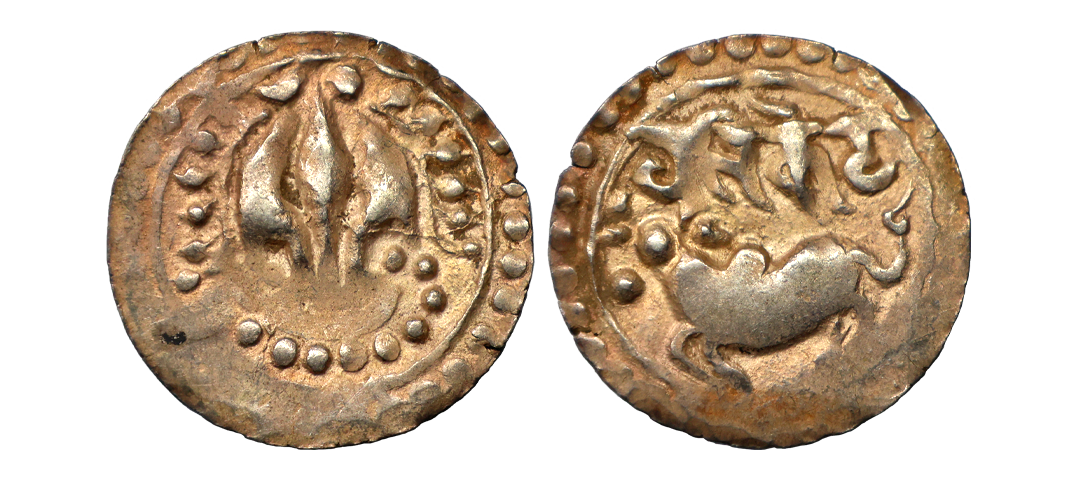 Nepal, Lichchhavi Dynasty, Narendradeva (641-680 AD), Copper, 5.79 gms, Pashupati type, Bull Sun, RGV # 96, very fine, scarce