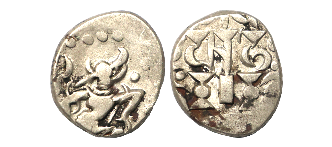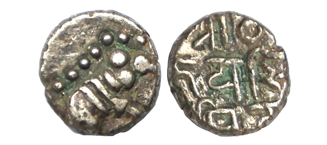 Chalukyas of Gujarat, Siddharaja Jaya Simha (1094-1144 AD), Silver Damma, 0.25 gms, Deyell #163a, fine, scarce.