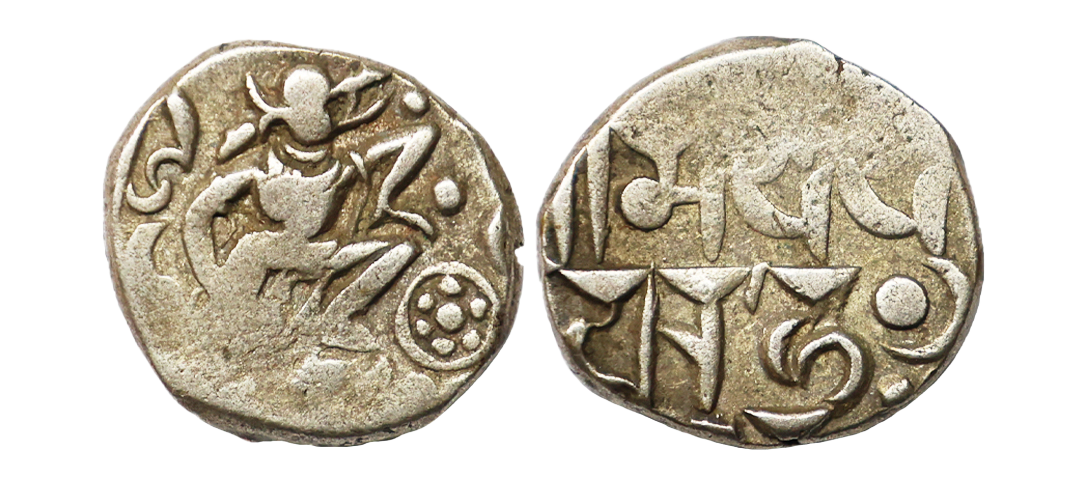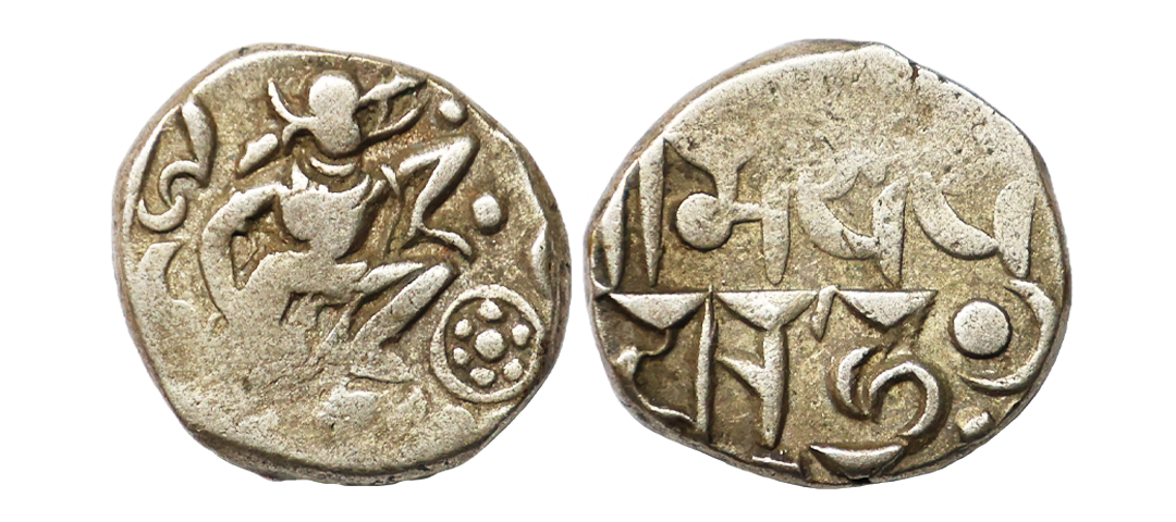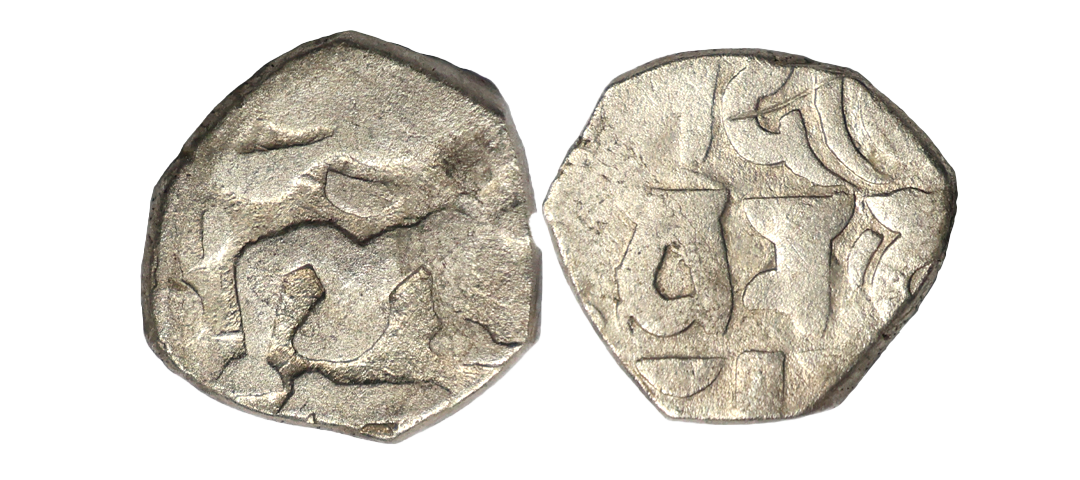 Chalukyas of Gujarat, Siddharaja Jaya Simha (1094-1144 AD), Silver Damma, 0.36 gms, Obv. Elephant facing to right, Rev. Devanagari legend Srima Jaya Simha in two lines, Deyell 163a, about very fine, very scarce.