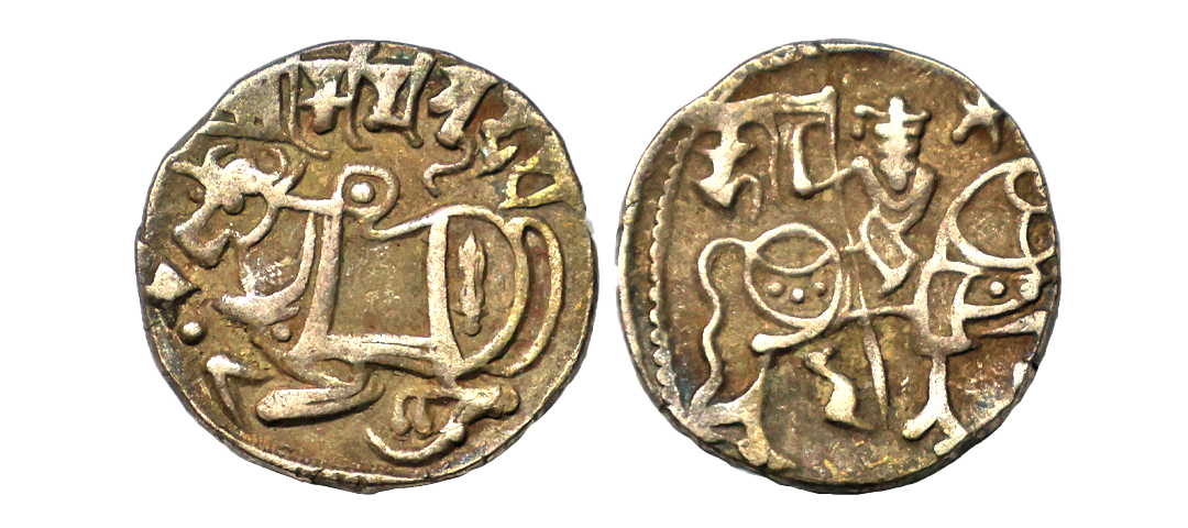 Hindu Shahis of Kabul and Gandhara, Samantadeva (9th-10th Century AD), Silver Unit, 3.24 gms, Obv. Horserider to right, Rev. Recumbent bull to left, Sharada legend above “Shri Samantadevah”, very fine, scarce.
