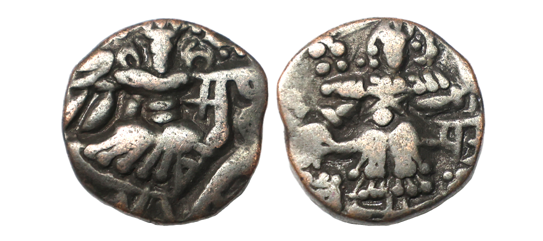Chauhans of Ajmer, Prithvi Raja III (1179-1192 AD), Billon Jital, 3.40 gms, Obv. Horseman right, Devanagari legend 'Sri Prithviraja Deva' around, rev. Bull seated left, with Devanagari legend 'Asavari Sri Samanta Deva' around, Deyell # 225, very fine+, rare.