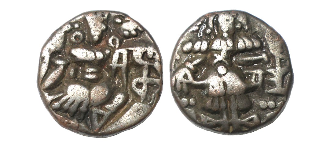 Hindu Rulers of Medieval Kashmir, Utpala Dynasty, Shankaravarman (884-903 AD),, Copper Drachm, 6.18 gms, Obv. Goddess Lakshmi seated facing Nagari legends, Rev. King standing facing and sacrificing with his right hand over altar, very fine, very scarce.