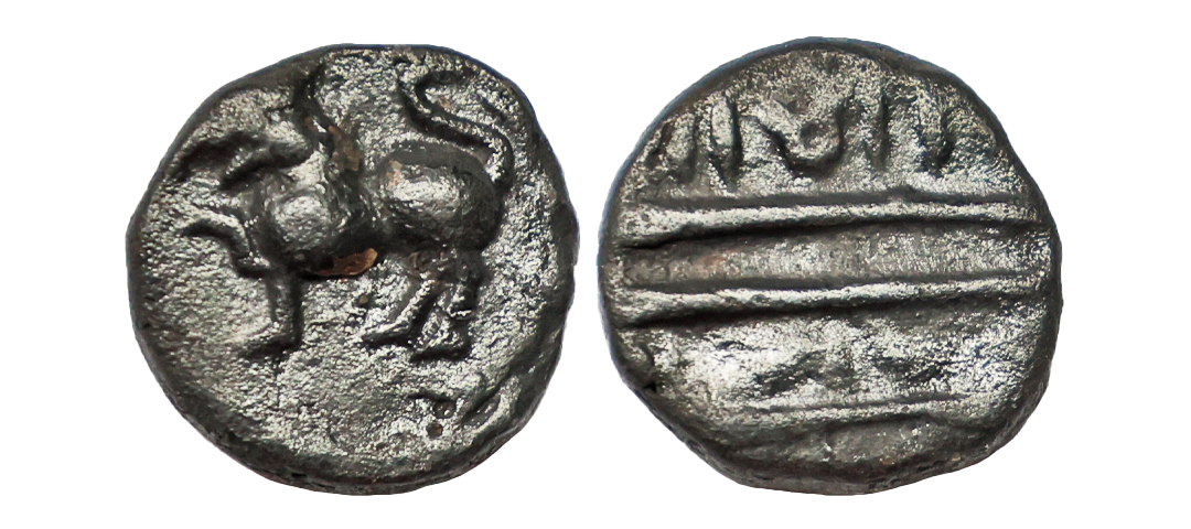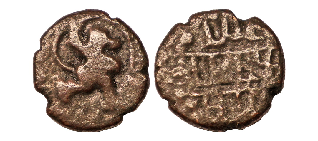 Medieval, Vijayanagar, Aravidu Dynasty, Tirumalaraya, Copper Unit, 3.68 gms, Gingee Mint, Obv: Humped Bull Standing left, sun and moon above, Rev: Devanagari Legend 'chalama/ raya', discuss, crescent, conch, Mitch. K&A # 863, very fine, rare.