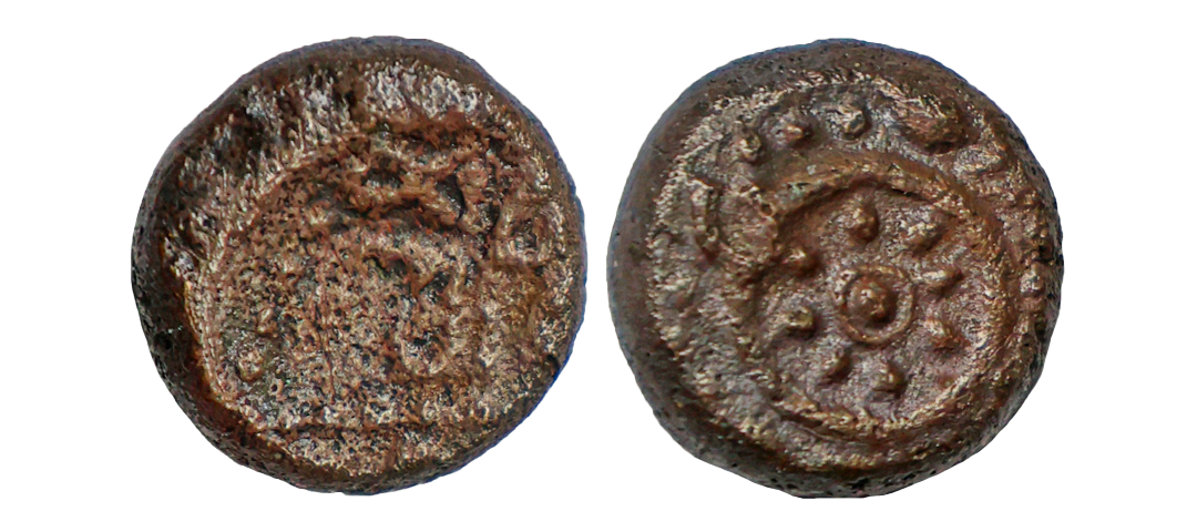 Medieval, Post Vijayanagar, Local Polygars, (17-18th Century AD), Copper Kasu, 3.09 gms, Obv. Chakra, Rev, traces of legends, fine, scarce.