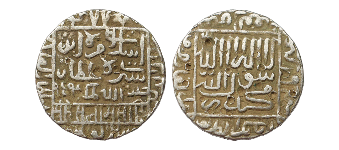 Delhi Sultanate, Sher Shah Suri (AH 945-952 / 1538-1545 AD), Silver Rupee,11.21g, Mintless, Bengal type, AH 948, standard legend within square area on both sides. (G&G # D819). Very Fine+.