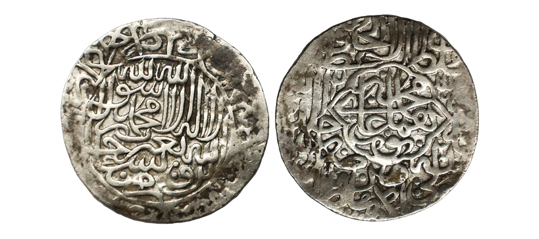 Humayun, First Reign (AH 937-947, 1530-1540 AD), Silver Shahrukhi, 4.63 gms, Agra Mint, AH 942, Obv. Muhammad Humayun Ghazi in the central cartouche surrounded by royal titles and mint-name, Rev. Shahadah with Quranic text 'yarzaqallah man yashao baghayr hisab, names and titles of the Rashidun around, Album #B2464, very fine+, rare.