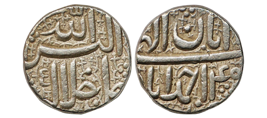 Akbar (AH 963-1014, 1556-1605 AD), Silver Rupee, 11.39 gms, Ahmadabad Mint, Ilahi Month Bahman, Year 3x, KM # 88.1, fine+, scarce.