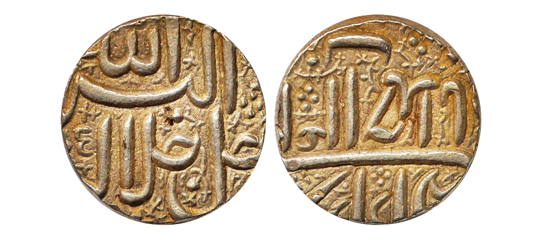 Akbar (AH 963-1014, 1556-1605 AD), Silver Square Rupee, 11.38 gms, Ahmedabad Mint, RY 37, very fine, scarce.