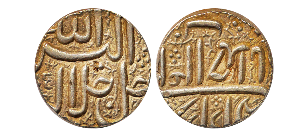 Akbar (AH 963-1014, 1556-1605 AD), Silver Square Rupee, 11.38 gms, Ahmedabad Mint, RY 37, very fine, scarce.