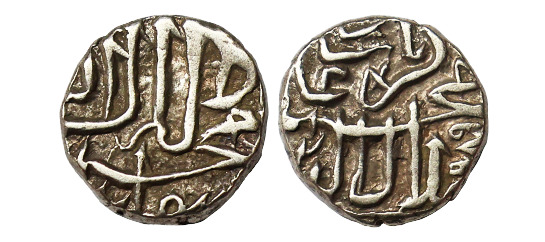 Akbar (AH 963-1014, 1556-1605 AD), Silver ½ Mahmudi, 2.78 gms, Mulher Mint (off flan), AH 989, KM # 71.1, very fine+, very scarce.