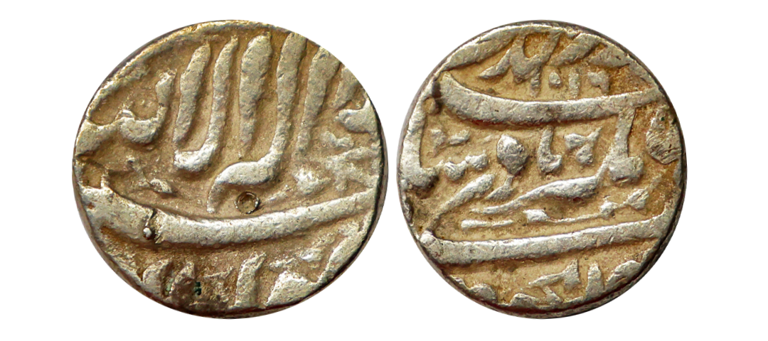 Jahangir (AH 1014-1037, 1605-1627 AD), Silver Rupee, 11.39 gms, Shahr Burhanpur Mint, Din Panah type, Fish as a mint mark on rev, KM #149.10, very fine, very scarce.