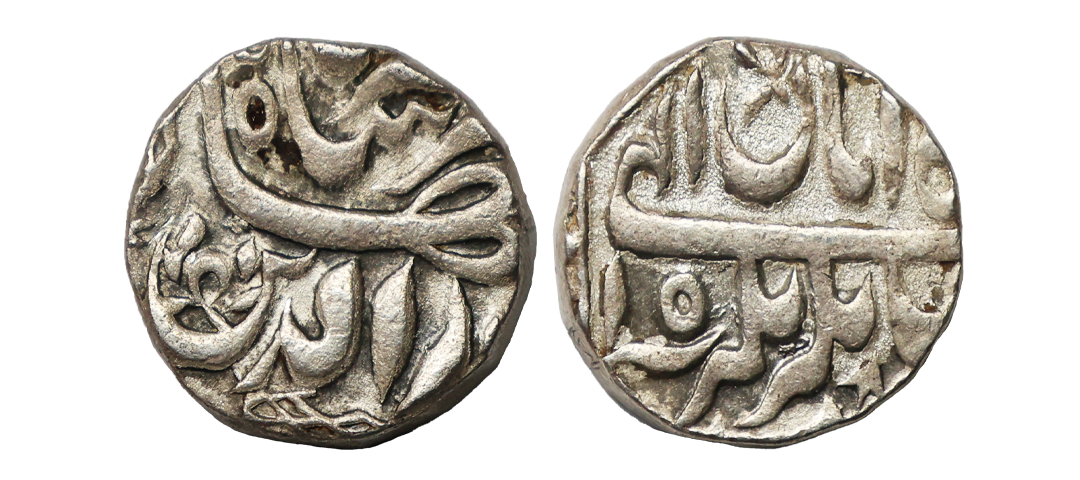 Jahangir (AH 1014-1037, 1605-1627 AD), Silver Rupee, 11.41 gms, 19.00 mm, Delhi Mint (fully visible at bottom on rev), Ilahi Month Farwardin, KM #145.6, very fine, very scarce.
