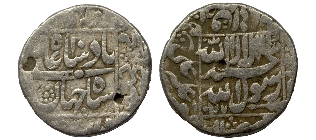 Shah Jahan (AH 1037-1068, 1628-1658 AD), Silver Rupee, 11.29 gms, Akbarnagar Mint, Ilahi month Amardad, KM #224.5, about very fine, very scarce.