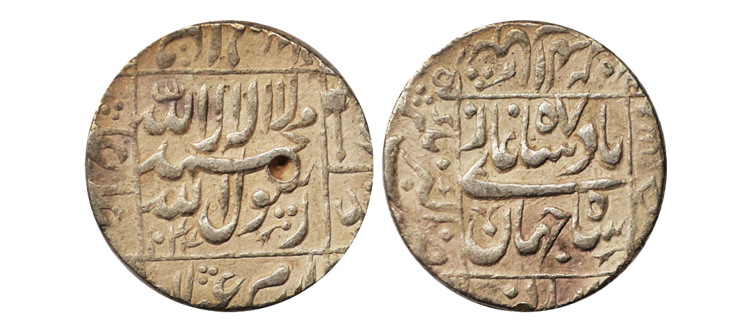Shah Jahan (AH 1037-1068, 1628-1658 AD), Silver Rupee, 11.32 gms, Akbarnagar Mint, AH 1045, RY 8, KM # 235.4, very fine, scarce.