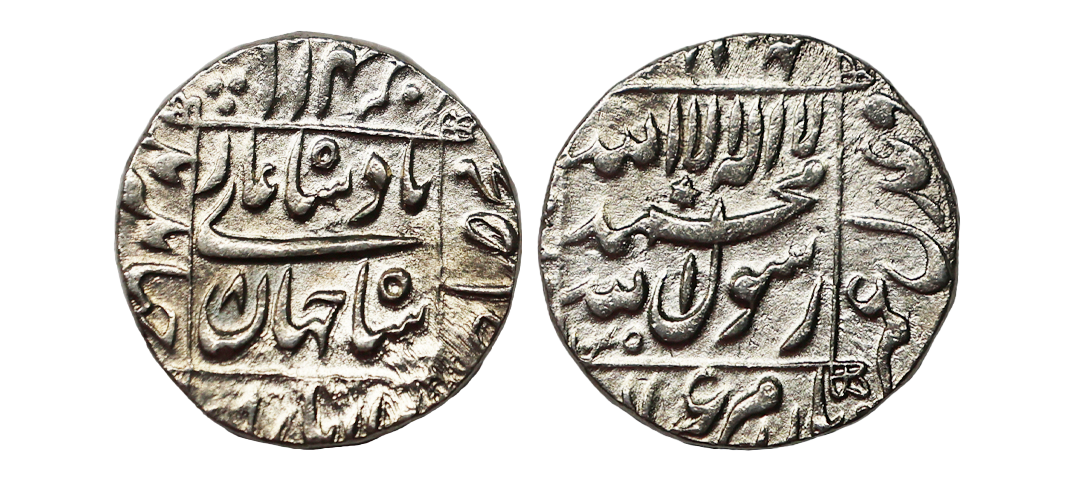 Shah Jahan (AH 1037-1068, 1628-1658 AD), Silver Rupee, 11.46 gms, Bhilsa Mint, AH 1054, RY 18, KM # 235.8, very fine, very scarce.