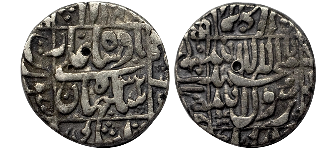 Shah Jahan (AH 1037-1068, 1628-1658 AD), Silver Rupee, 11.36 gms, Surat Mint, AH 1040, Hijri type, KM #222.13, very fine, very scarce.